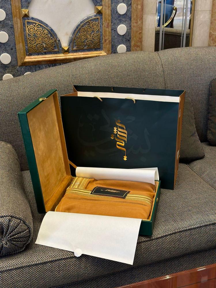العروض المتاحة مع البشت لا تقتصر على جودته العالية فحسب، بل تشمل مجموعة من الخدمات الإضافية التي تعزز من تجربة الشراء وتجعلها أكثر تميزًا. فالسعر يشمل الضريبة، كما يستفيد العميل من الشحن المجاني داخل المملكة العربية السعودية، بالإضافة إلى خبن البشت وكتابة الإسم وفق الطلب دون أي تكلفة إضافية. ولإضفاء لمسة شخصية، نقدم إمكانية إضافة كرت إهداء دون مقابل.