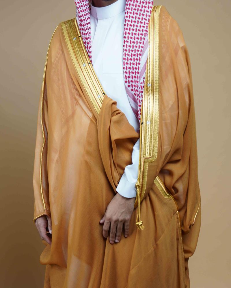 تألق بأناقة مع بشت ملكي زعفراني المميز