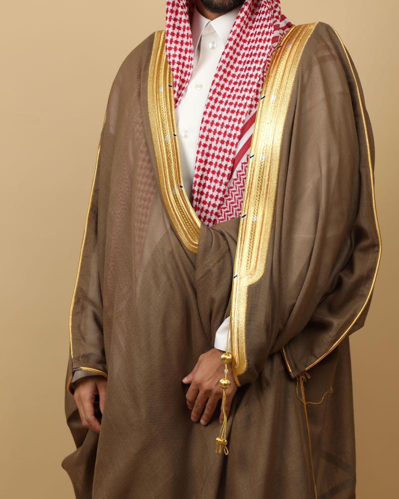الرقي والفخامة في بشت ملكي بلون كموني فاخر